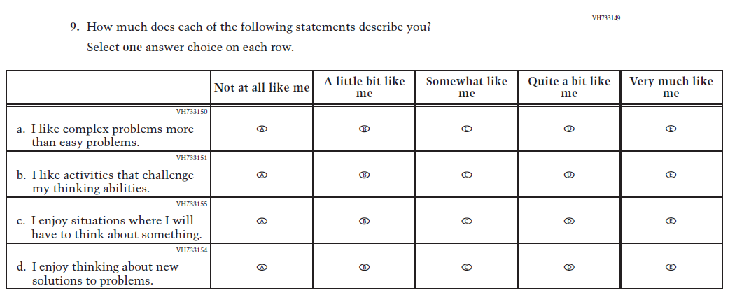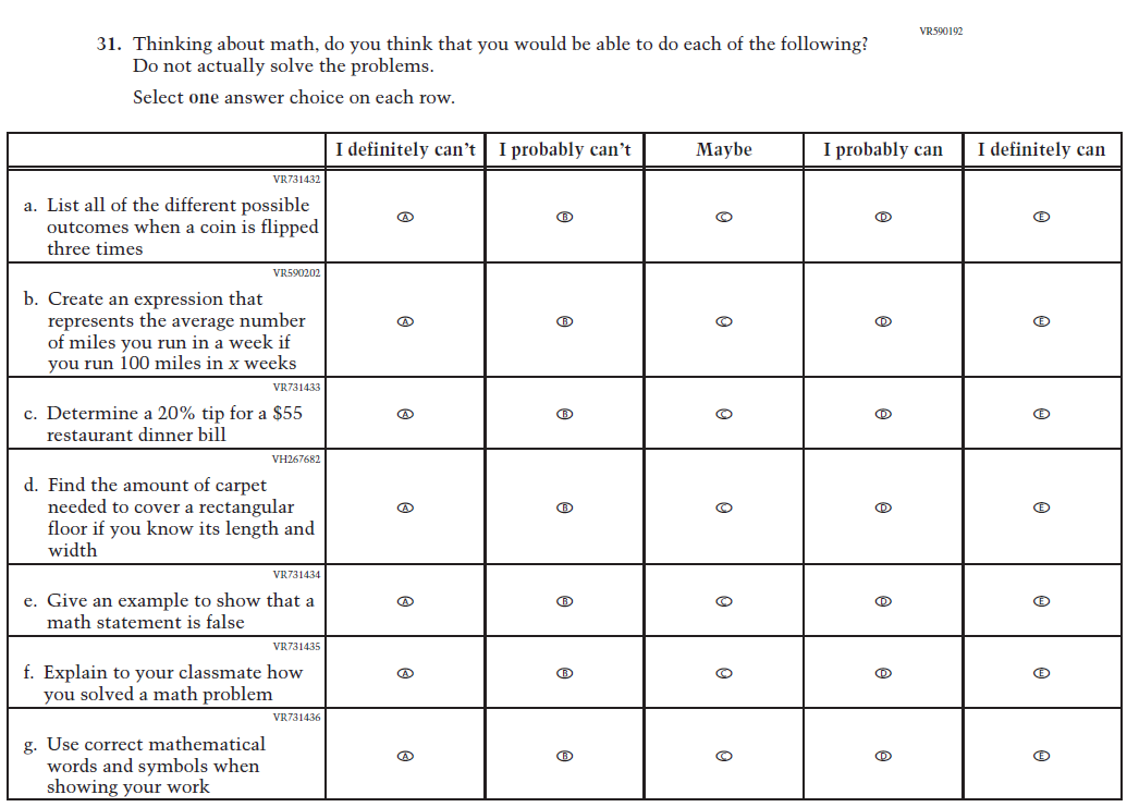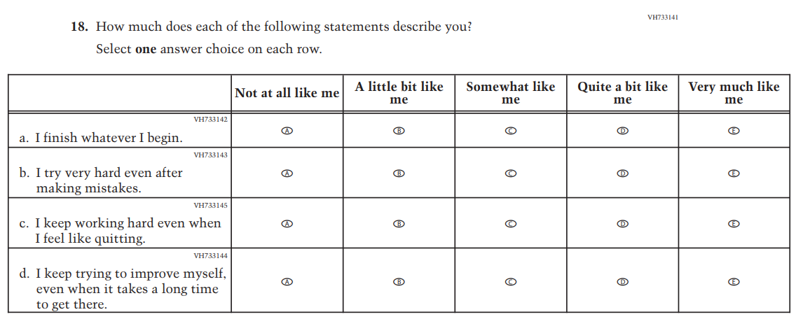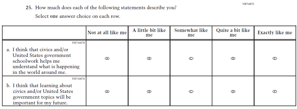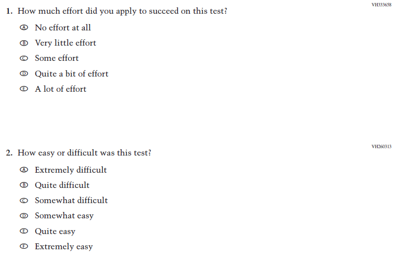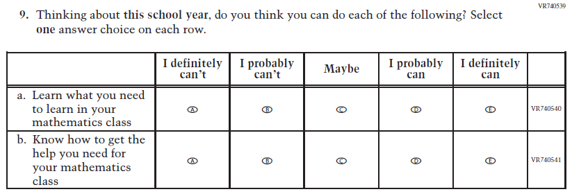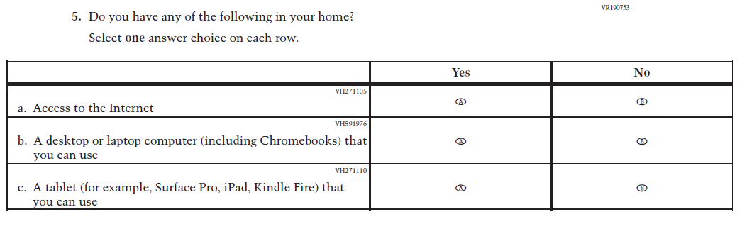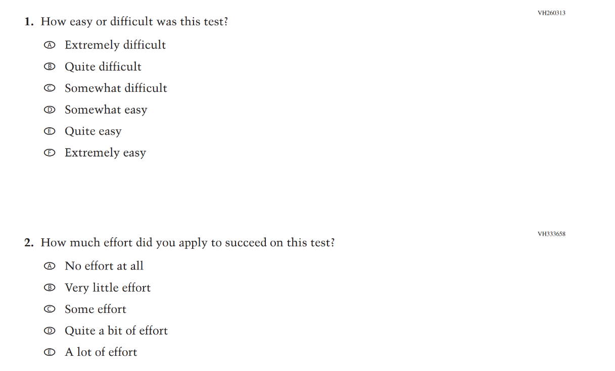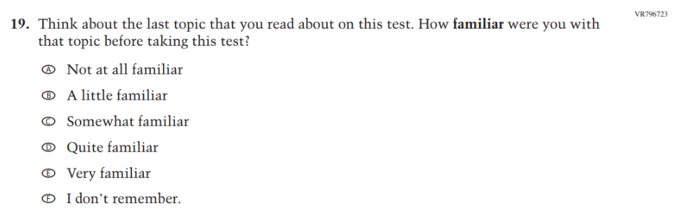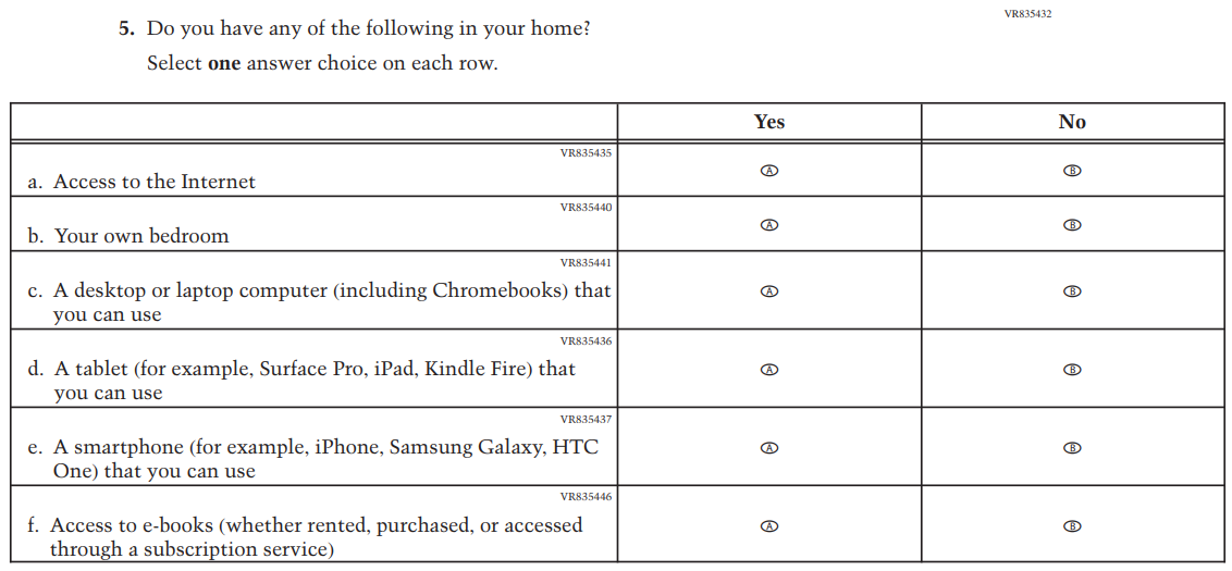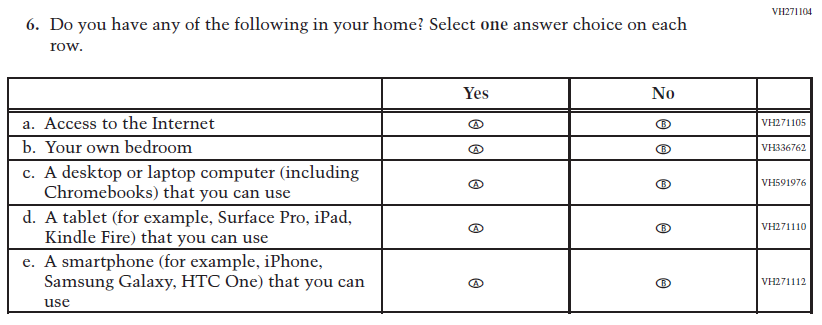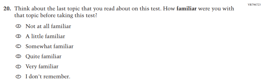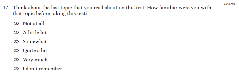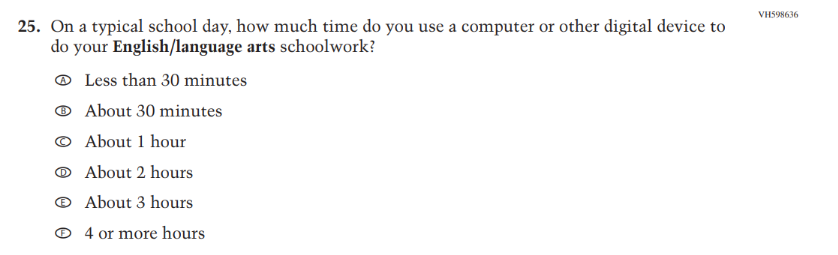 This Item was added to understand students’ experiences with using their devices to take the assessment. |