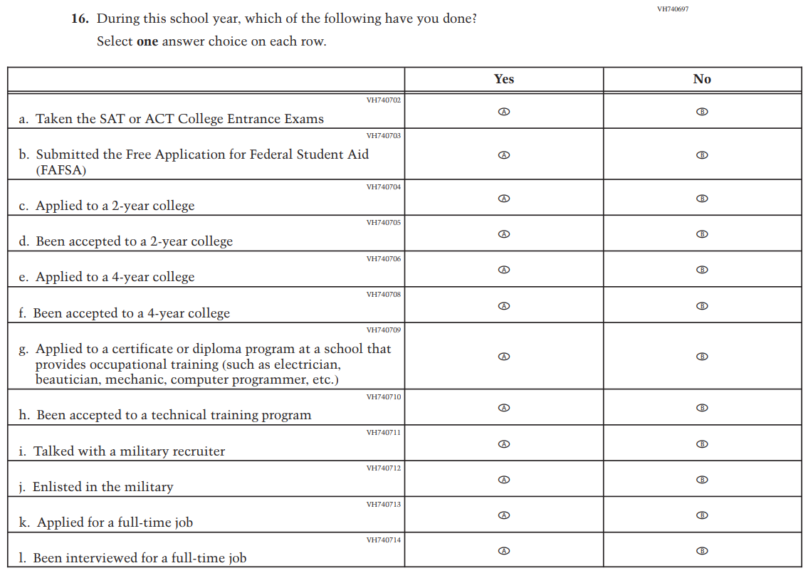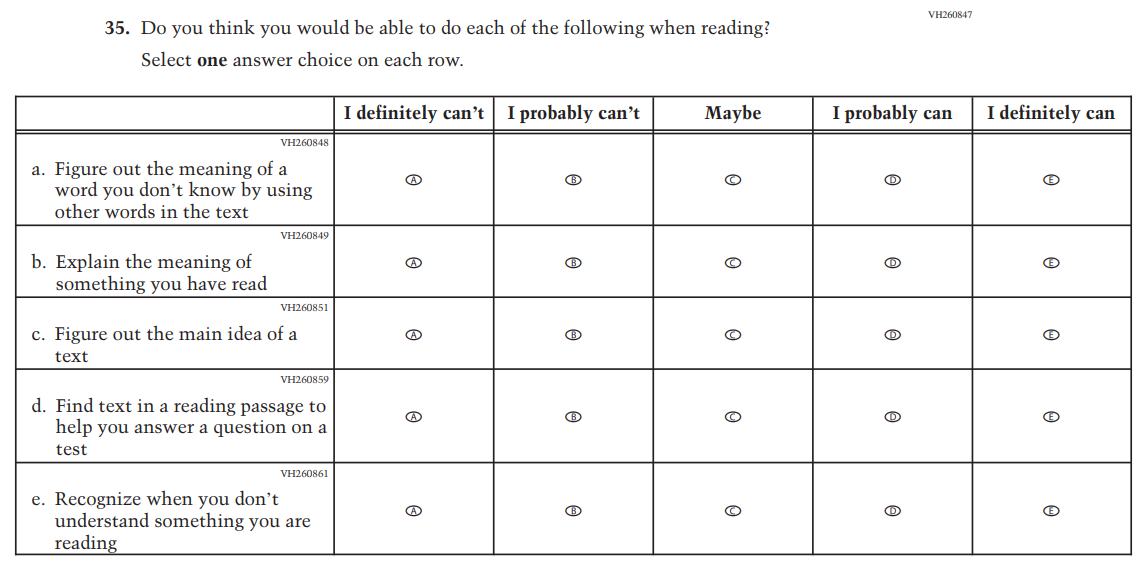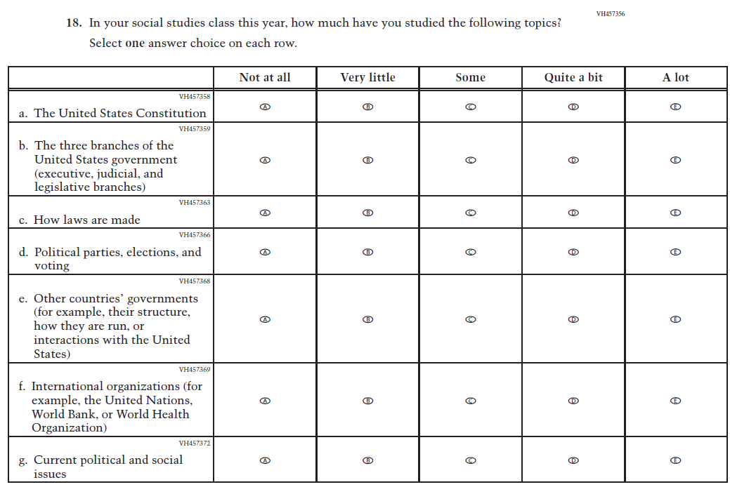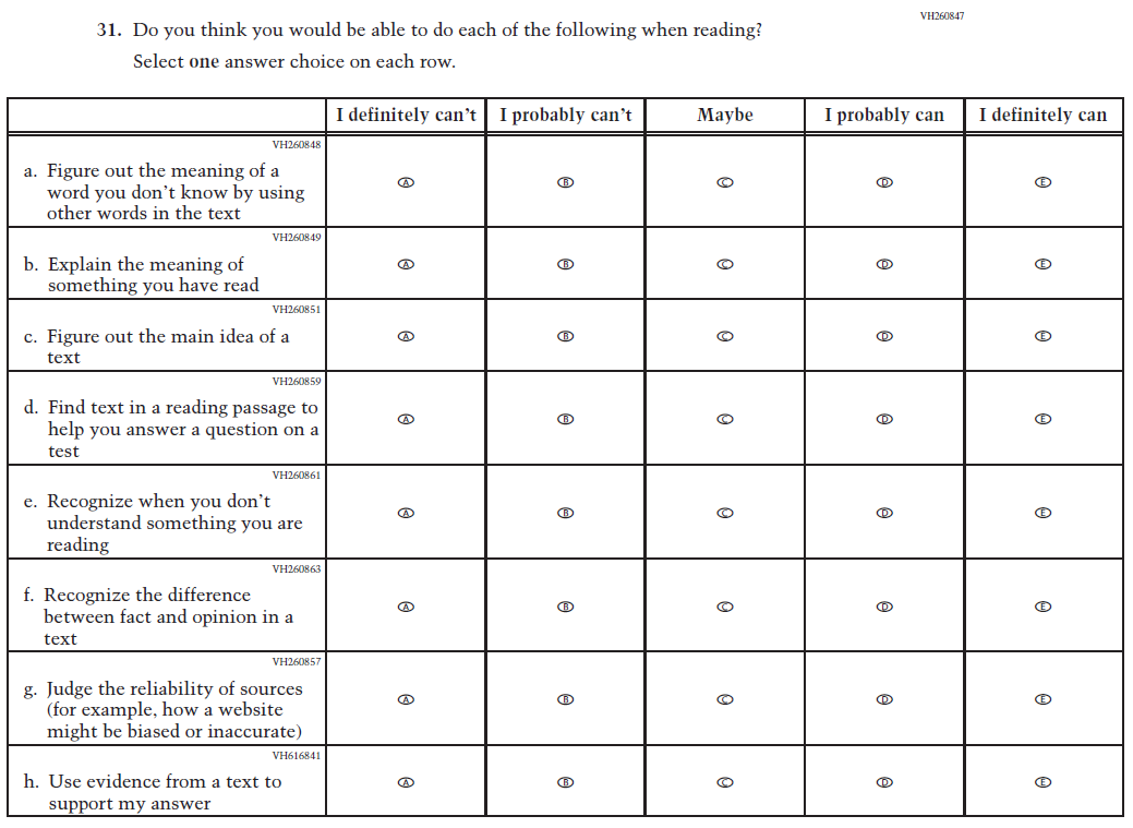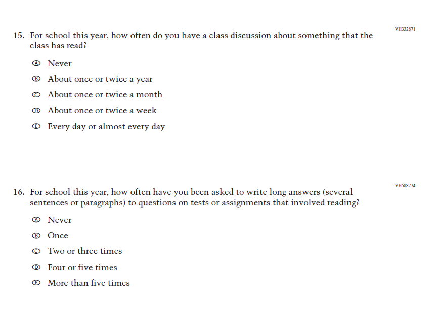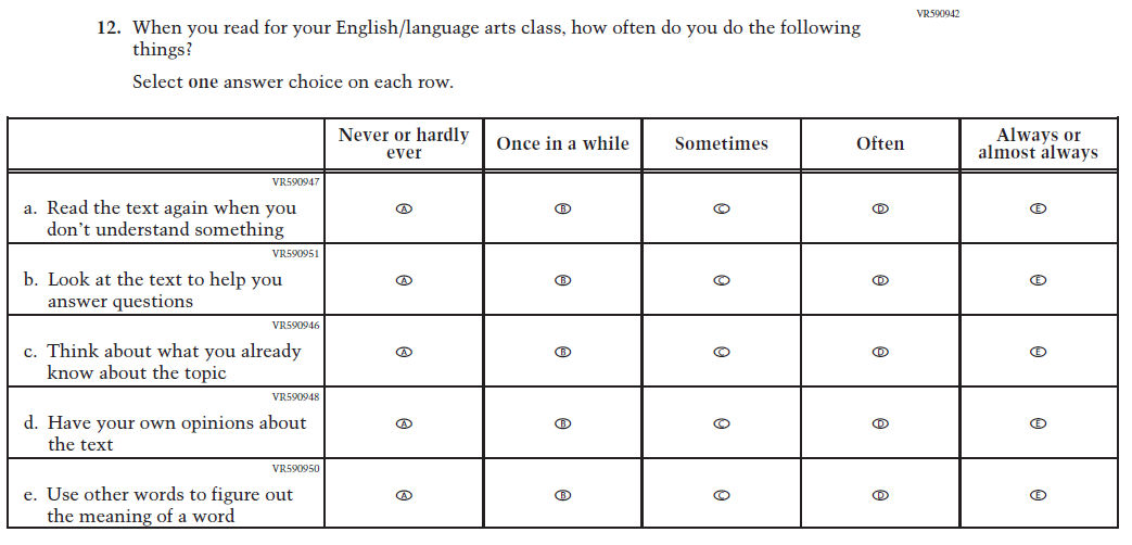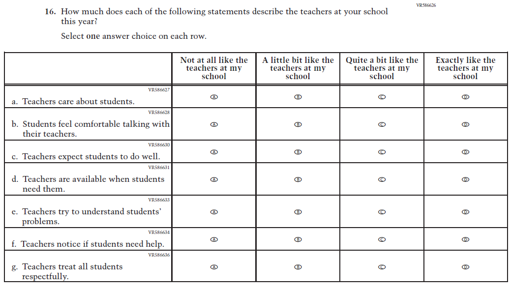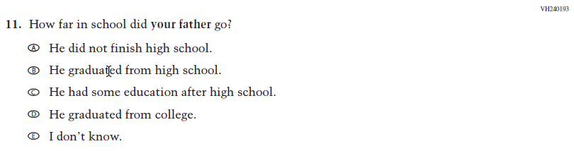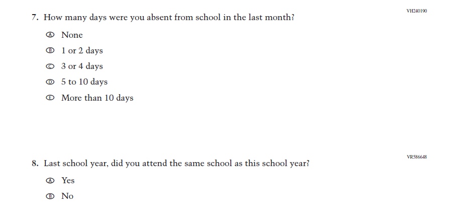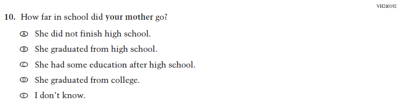 This item was added for consistency with the questionnaire at grade 4. |