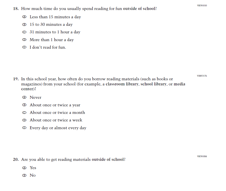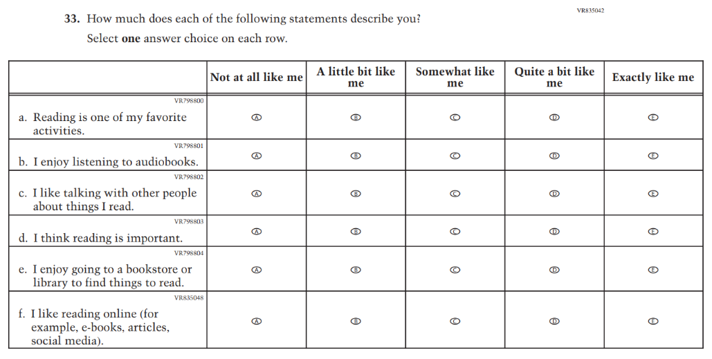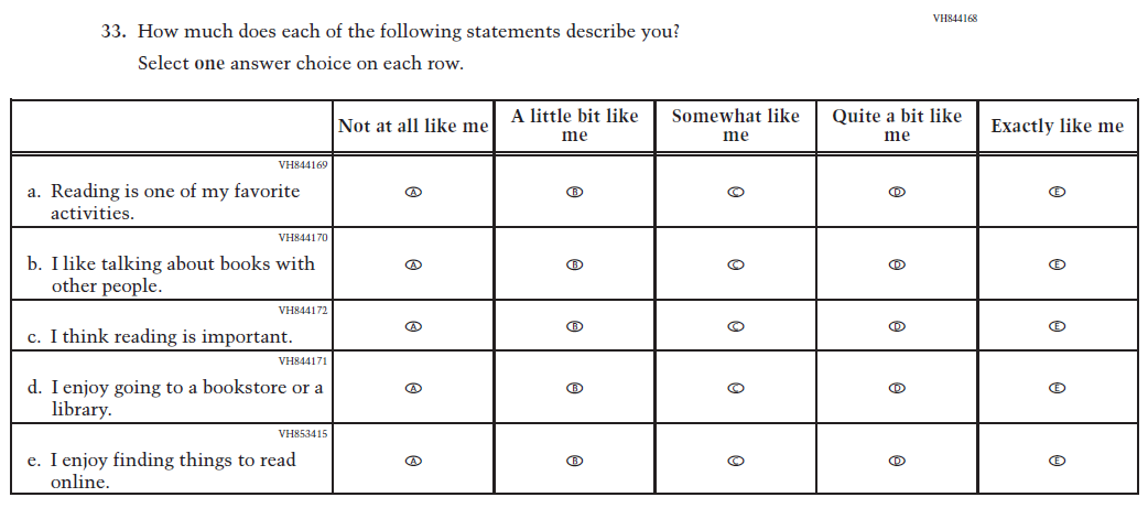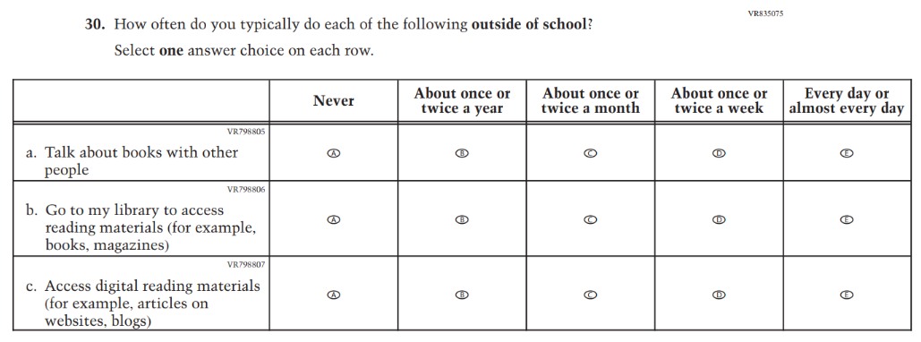 This Item was revised to put the emphasis on “reading for fun.” |