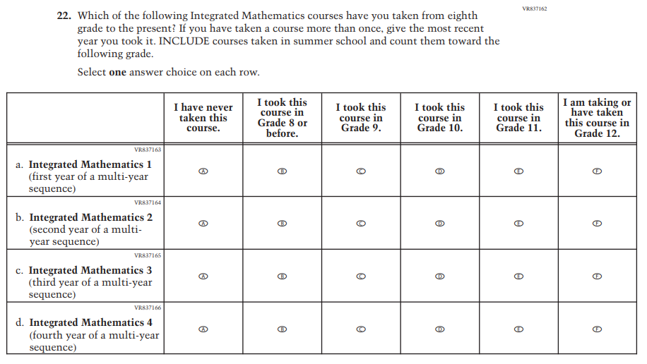 This item was developed to measure content aligned with the new Mathematics framework. |