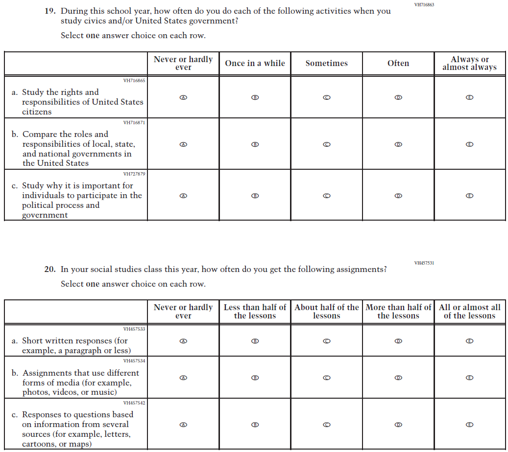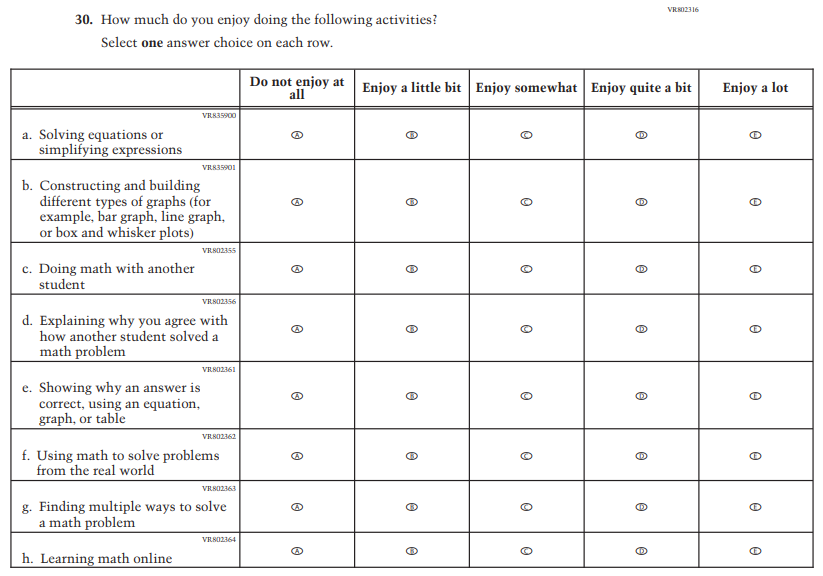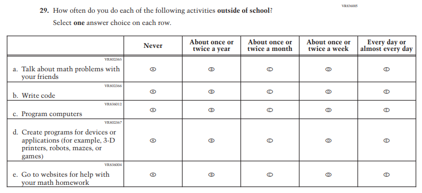 Learning Recovery Items were dropped from the 2026 NAEP Assessment. |