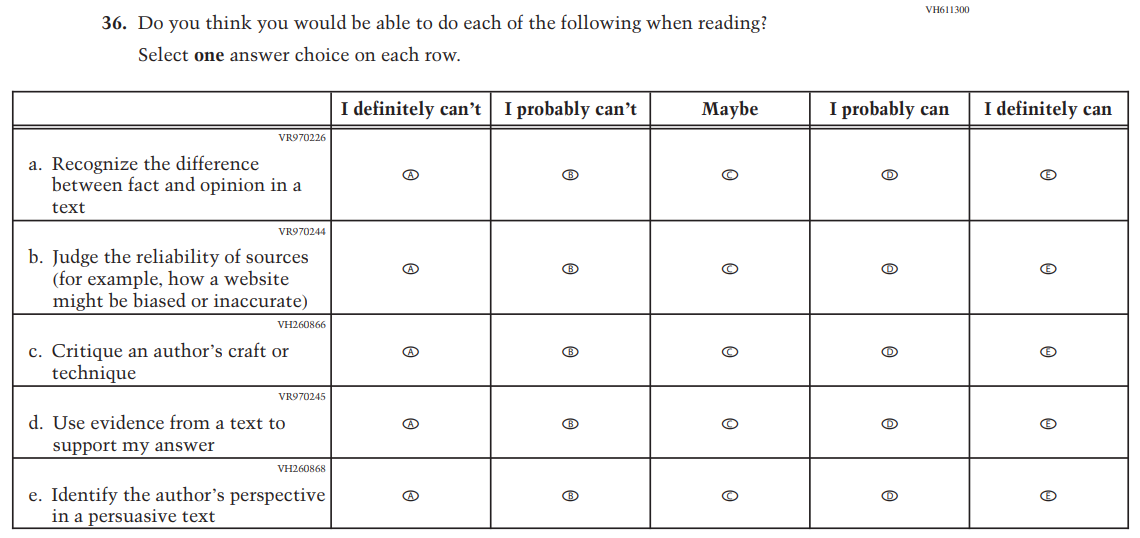 This item was developed to measure content aligned with the new Reading framework. |