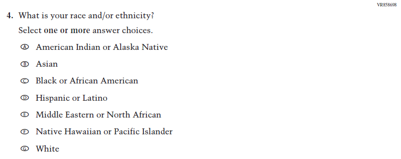 This Item was dropped and replaced with an updated Item (VR858698) that adheres to OMB updated Statistical Policy Directive No. 15. |
