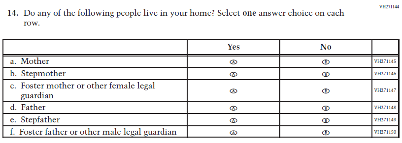 VH27144 was dropped and replaced with Item VR935135 as an updated format for collecting information on parent/ guardian education and employment. |