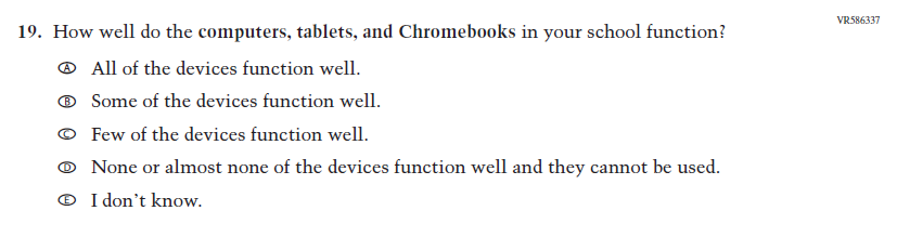 For 2026, we have aligned Inline Directions in Teacher and School Items with the Directions currently used in Student Items. The Item has been revised to focus on training in Technology Use. |