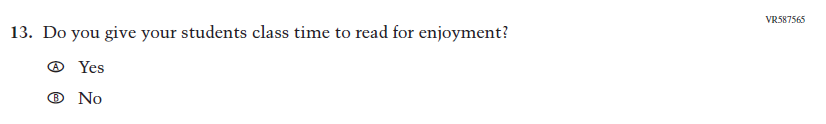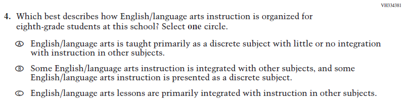 For 2026, we have aligned Inline Directions in Teacher and School Items with the Directions currently used in Student Items. The Item stem and subitem c were revised for clarity and subitem h was developed to measure content aligned with the new Reading framework. |