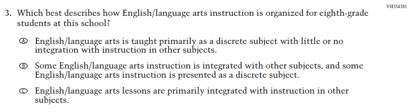 For 2026, we have aligned Inline Directions in Teacher and School Items with the Directions currently used in Student Items. The Item stem and subitem c were revised for clarity. |