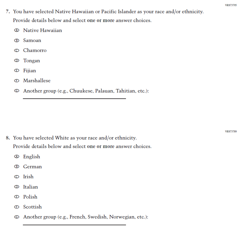 Important changes in how we collect demographic information are reflected in the 2026 instruments that are ready for publication and review. In March 2024, the Office of Management and Budget (OMB) announced revisions to Statistical Policy Directive No. 15: Standards for Maintaining, Collecting, and Presenting Federal Data on Race and Ethnicity (SPD 15) and published the revised SPD15 standard in the Federal Register (89 FR 22182). See Part A.7 of this package to see how NCES plans to incorporate these revisions into NAEP 2026.