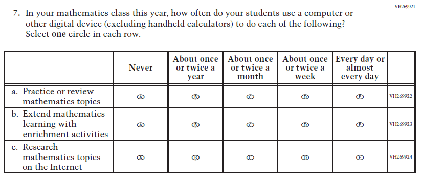 This Item was dropped to prioritize newer, updated Teacher items on Technology Use. |