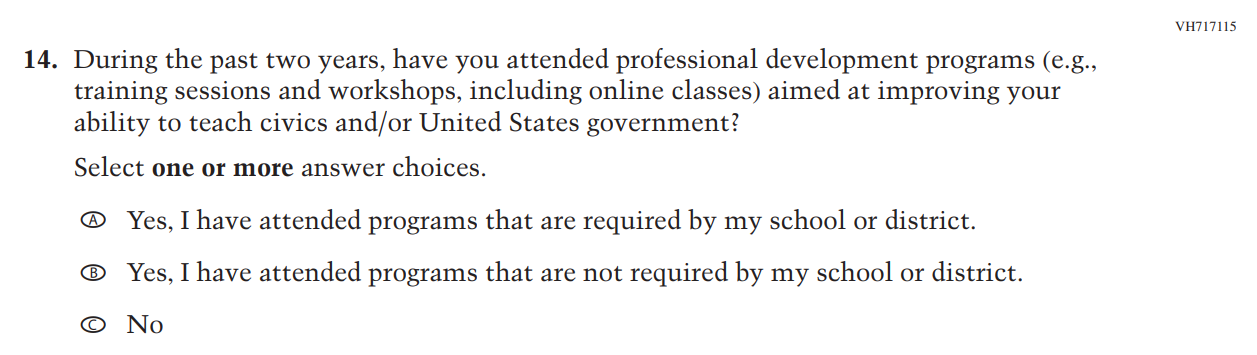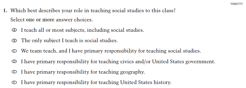 For 2026, we have aligned Inline Directions in Teacher and School Items with the Directions currently used in Student Items. This Item was revised to remove Science-related SubItems a through f and add Social Studies-related SubItems, since Science is not being administered in 2026, and Social Studies is. |