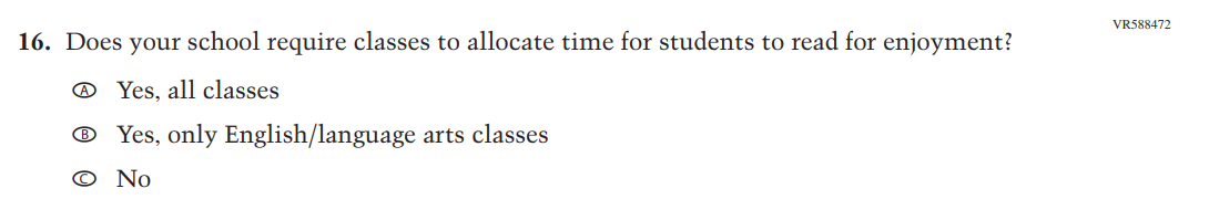 For 2026, we have aligned Inline Directions in Teacher and School Items with the Directions currently used in Student Items. Subitem d was developed to measure content in the new Reading framework. |