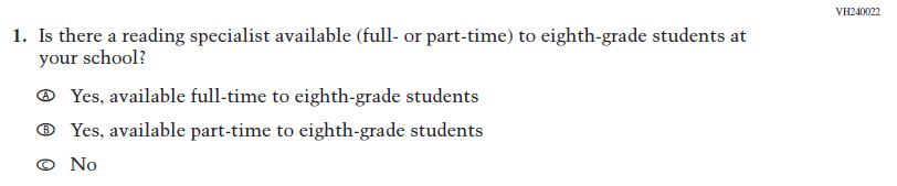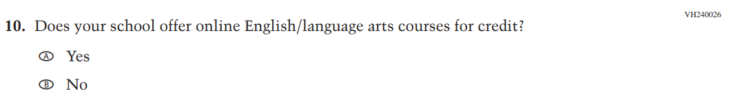 For 2026, we have aligned Inline Directions in Teacher and School Items with the Directions currently used in Student Items. Subitem a was revised for clarity. |