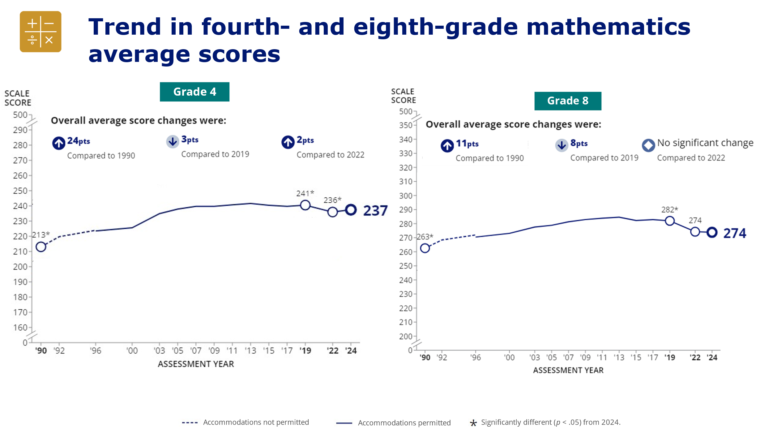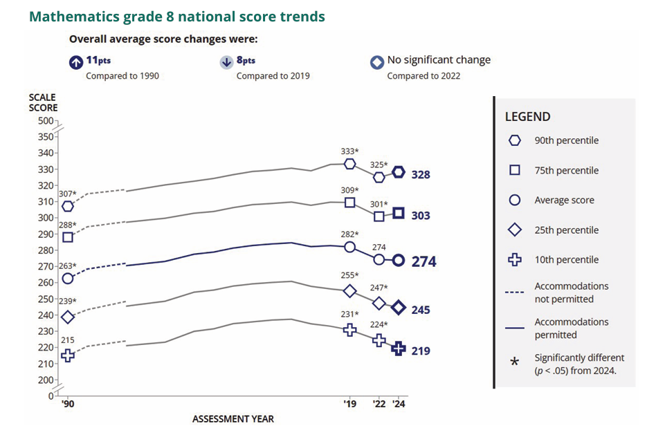 In 2026, NAEP will use a new framework for mathematics assessments at grades 4 and 8. This framework, approved by the National Assessment Governing Board, replaces the last framework which was updated in 2006. Trends in student performance for participating states can be measured since 1992 for grade 4 and 1990 for grade 8.