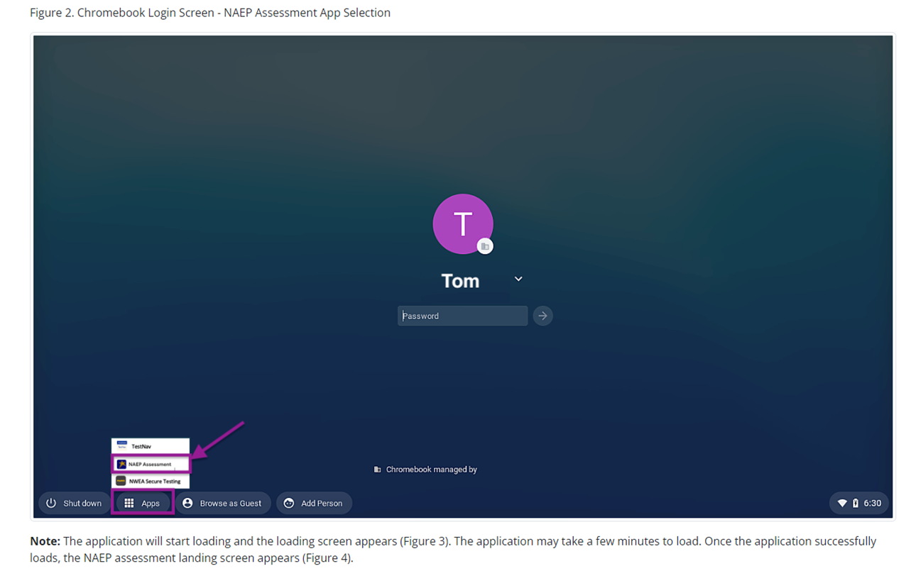 NAEP will be administered using Chromebooks provided by NAEP for the following schools.