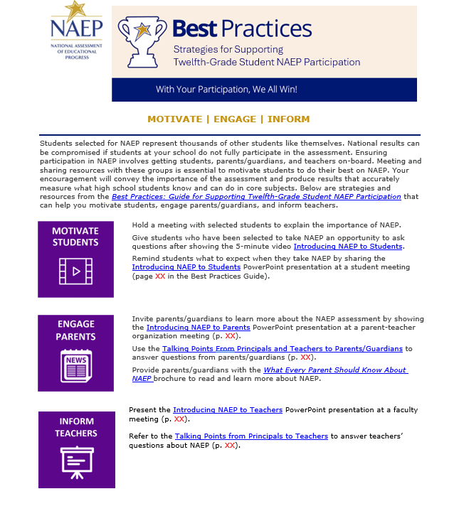 Appendix D-80: NAEP 2026 Best Practices Talking Points Principals and Teachers to Parents (NEW) 412