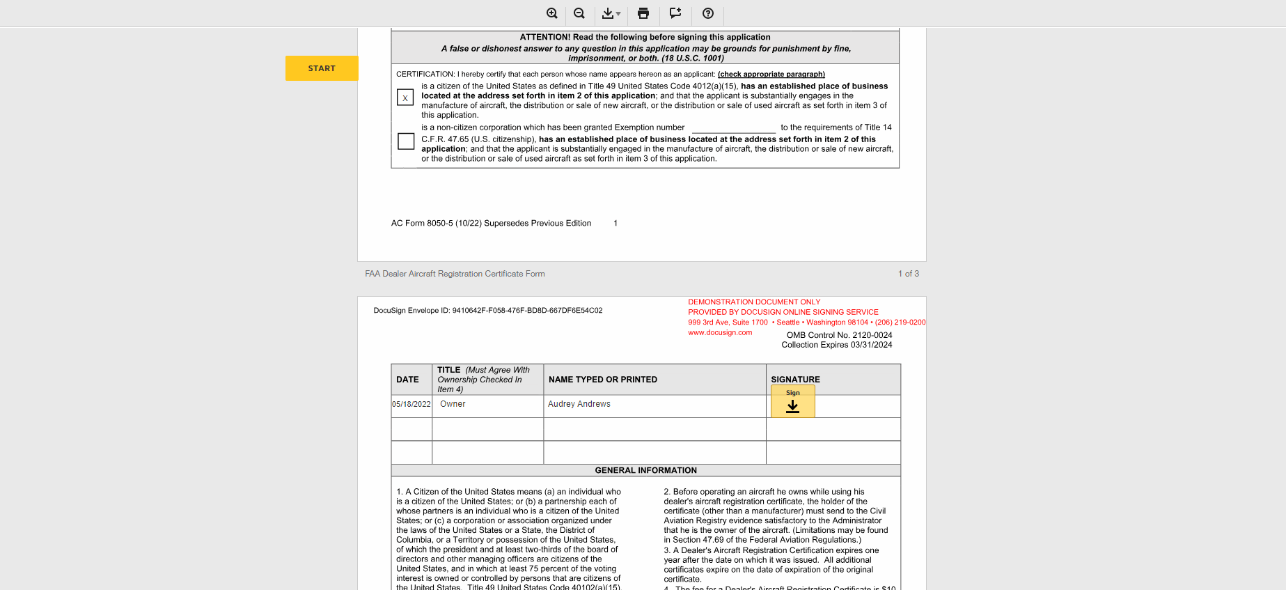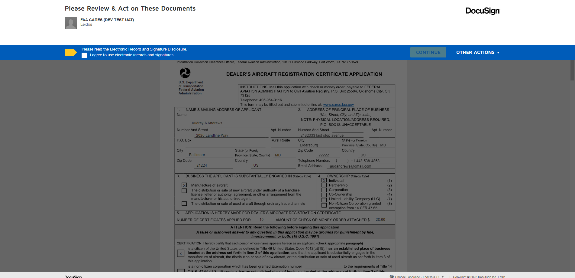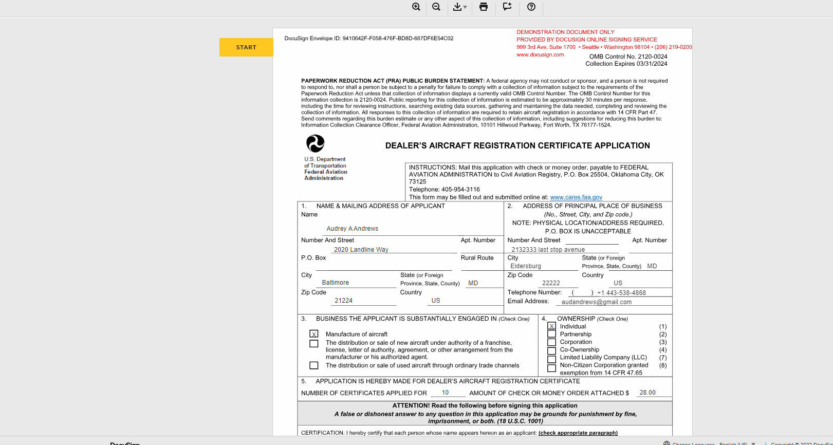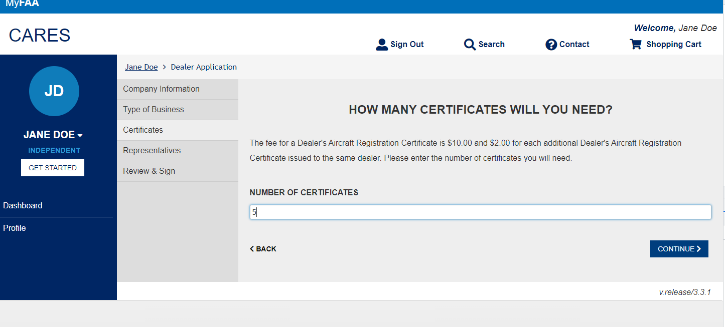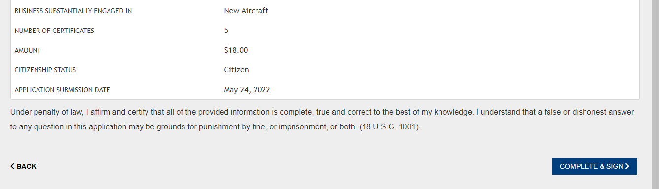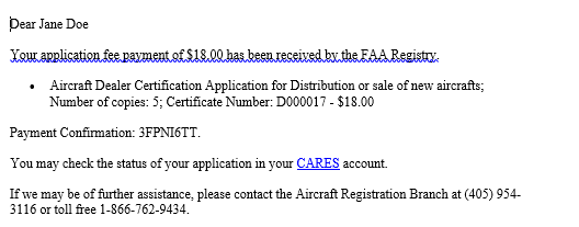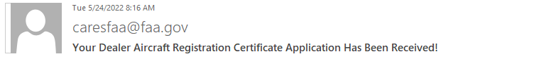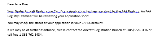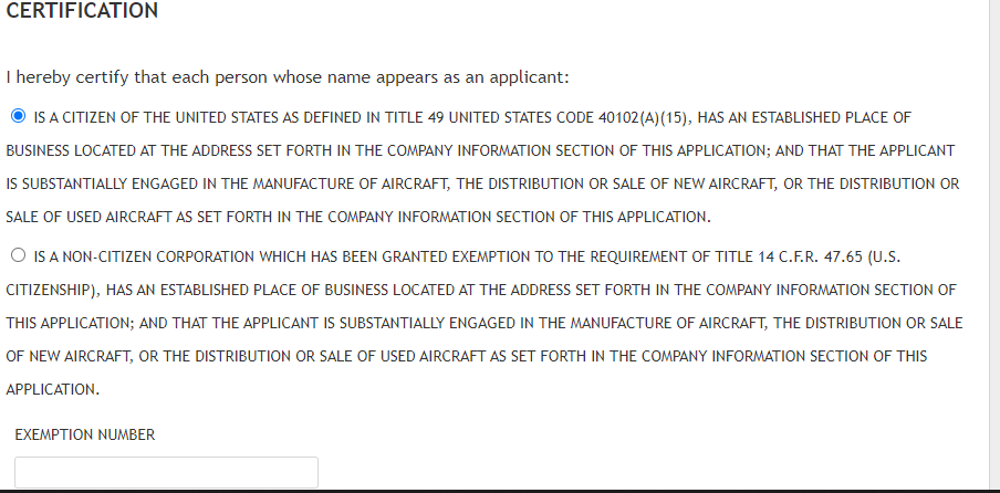 Dealer's Aircraft Registration Certificate Application