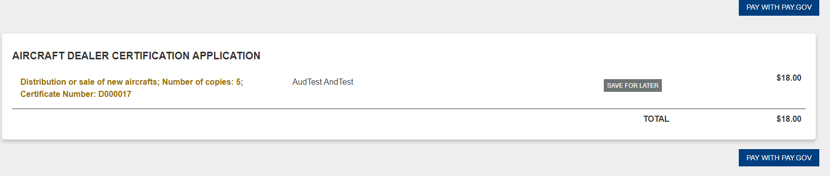Shopping Cart is Presented to Pay with PAY.GOV