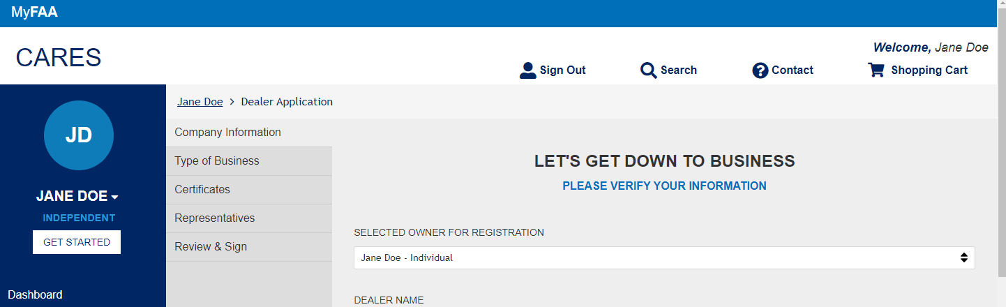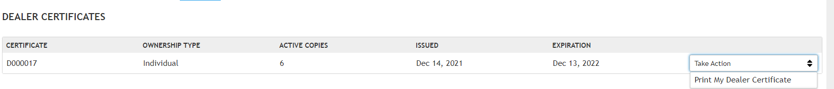 Select Apply for a Dealer Certificate