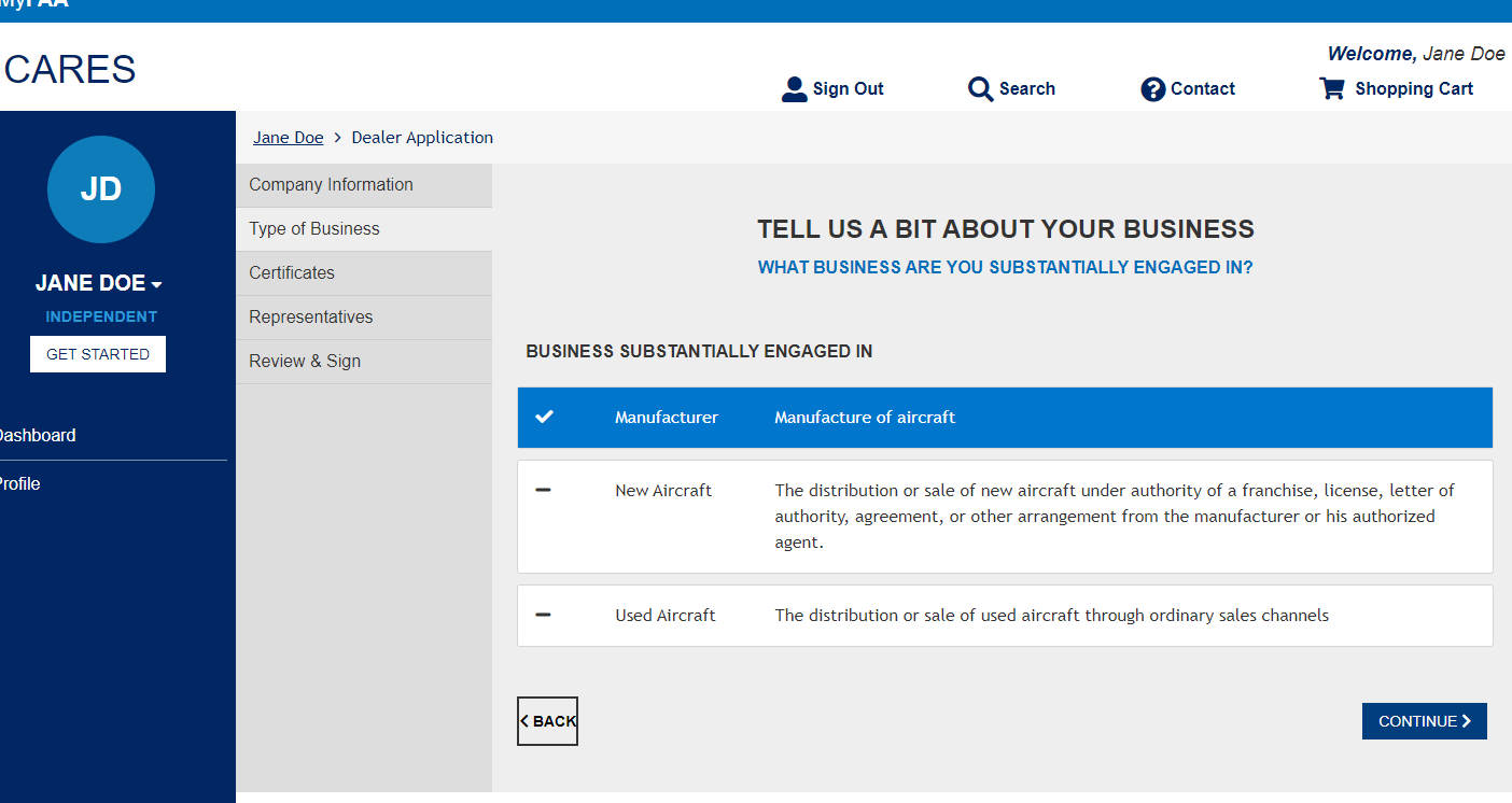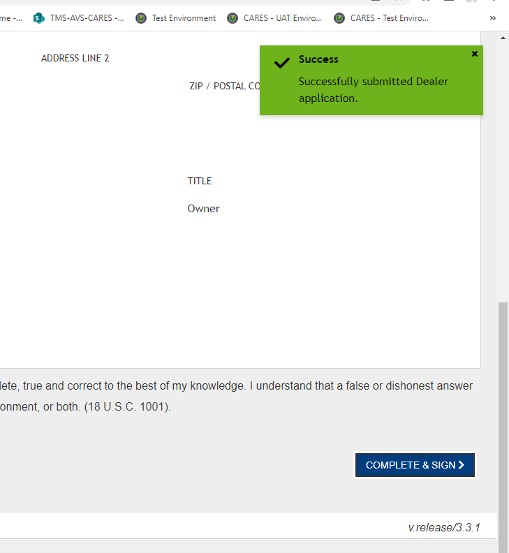 CARES Dealer Application Screen Shots