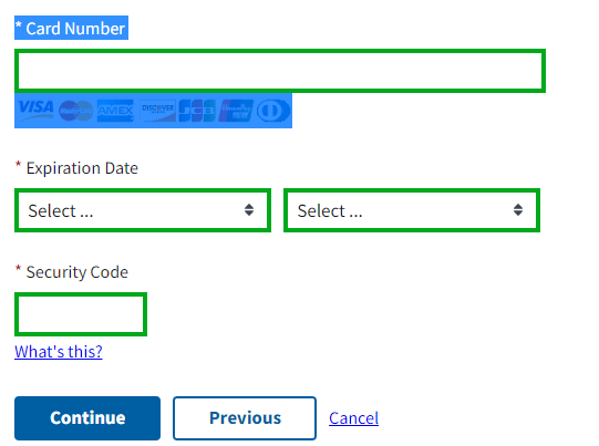 Select payment information and continue
