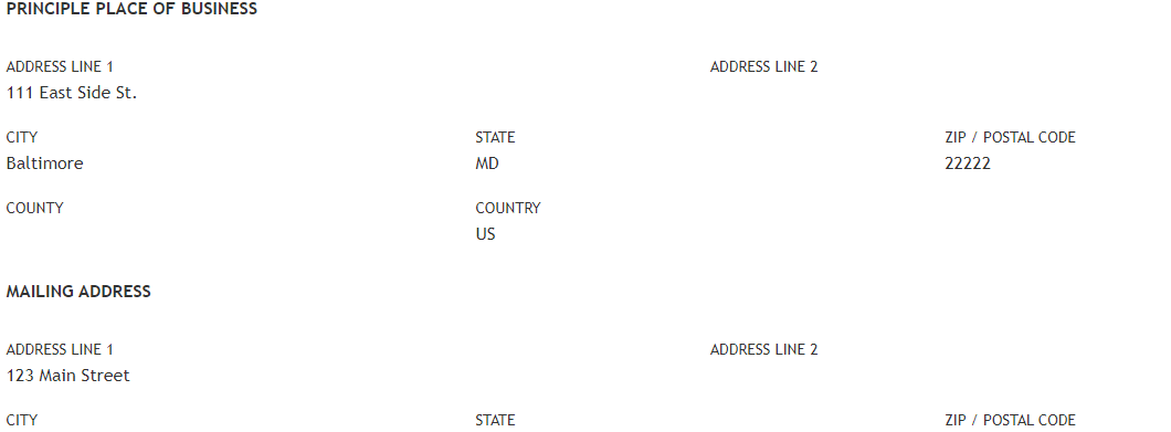 REVIEW & SIGN DOCUMENT IS PRESENTED to include Principle Place of Business, Mailing Address, Members and number of certificates requested with total amount