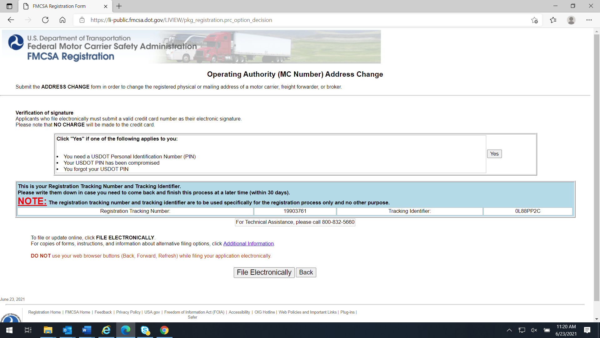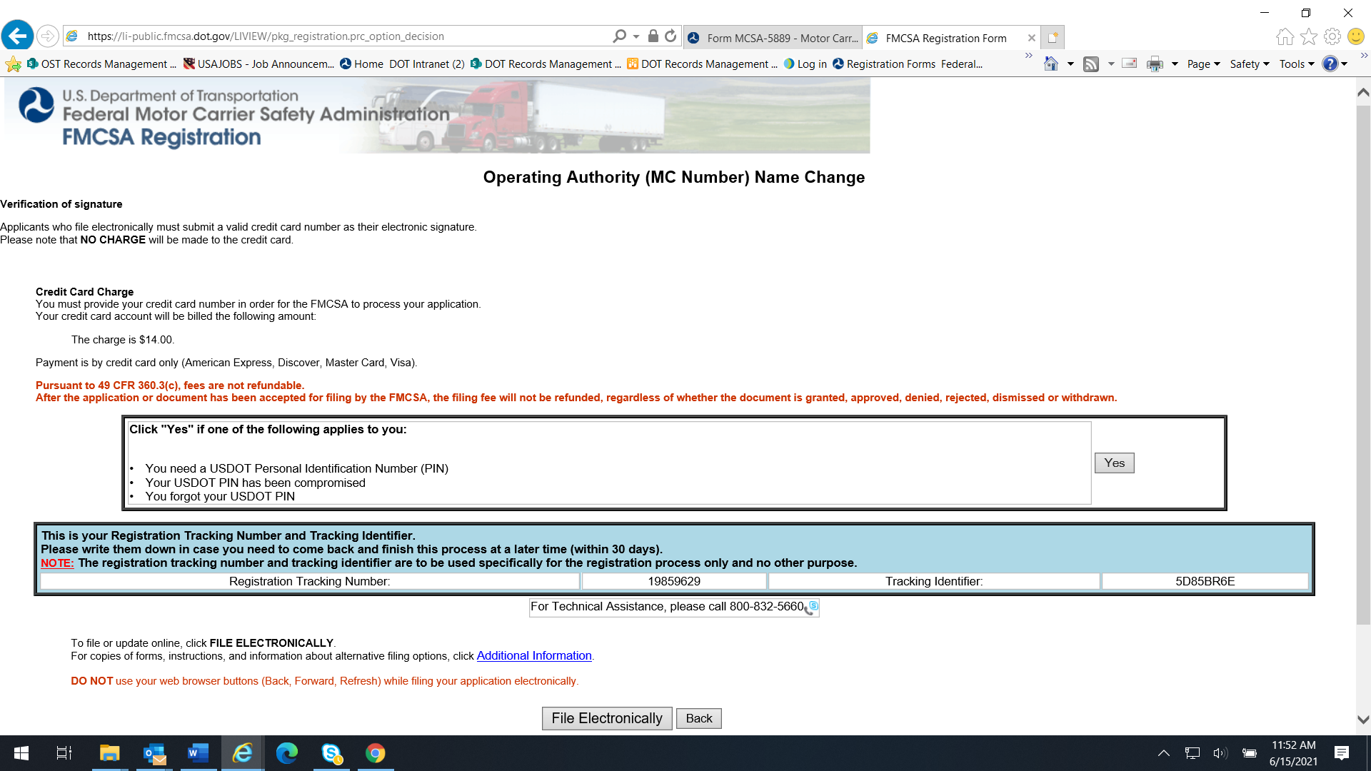 Screenshot of Submittal of MCSA 5889 Via L&I Website