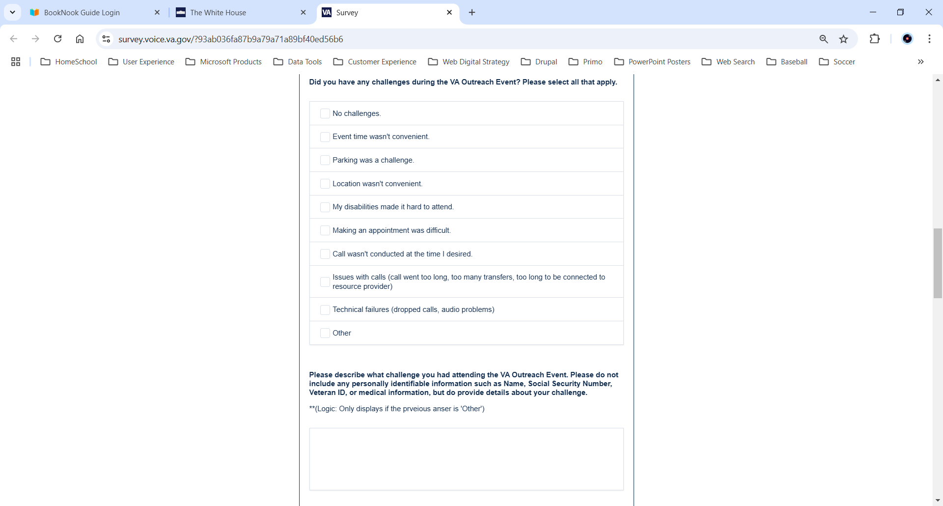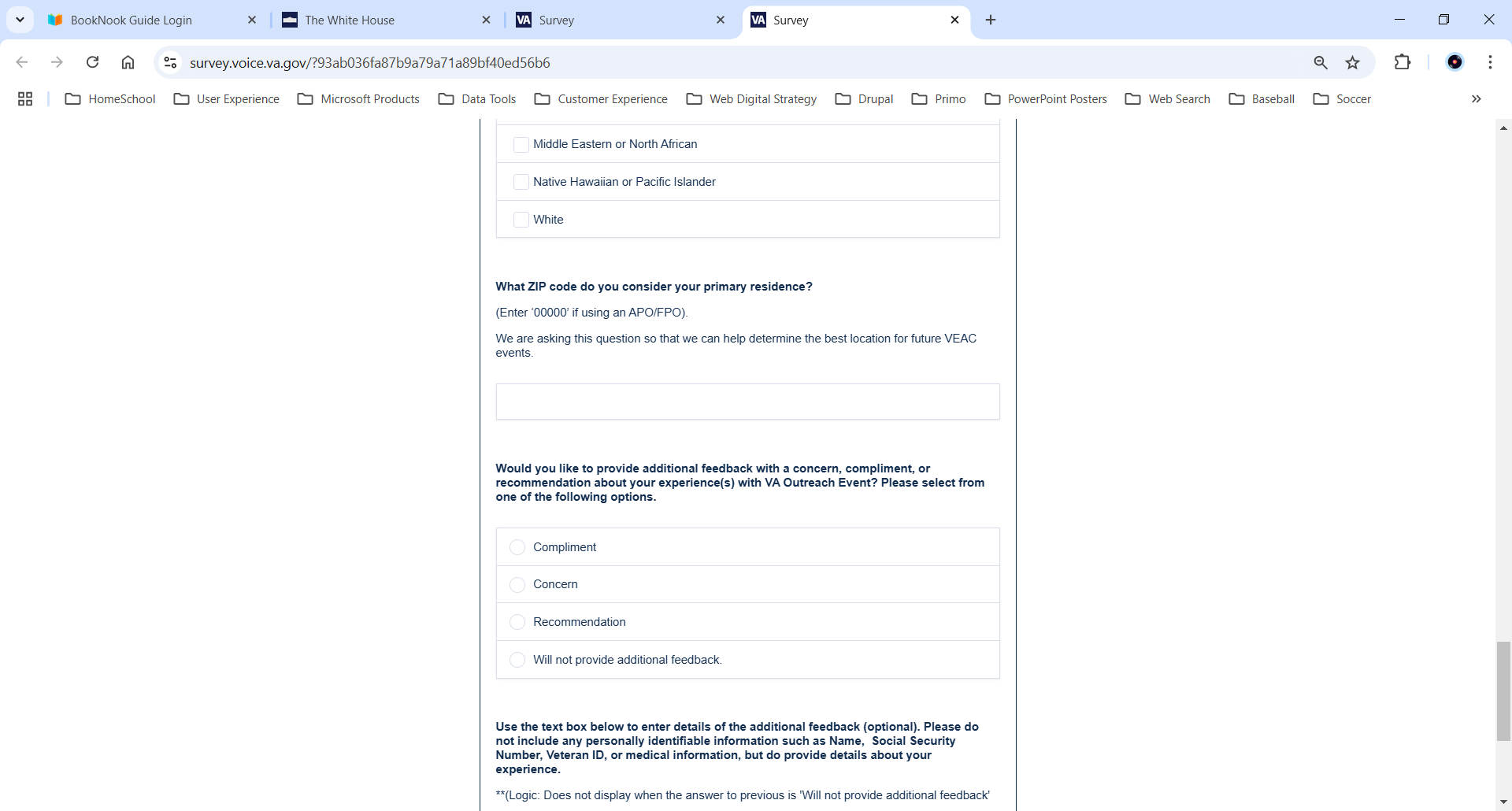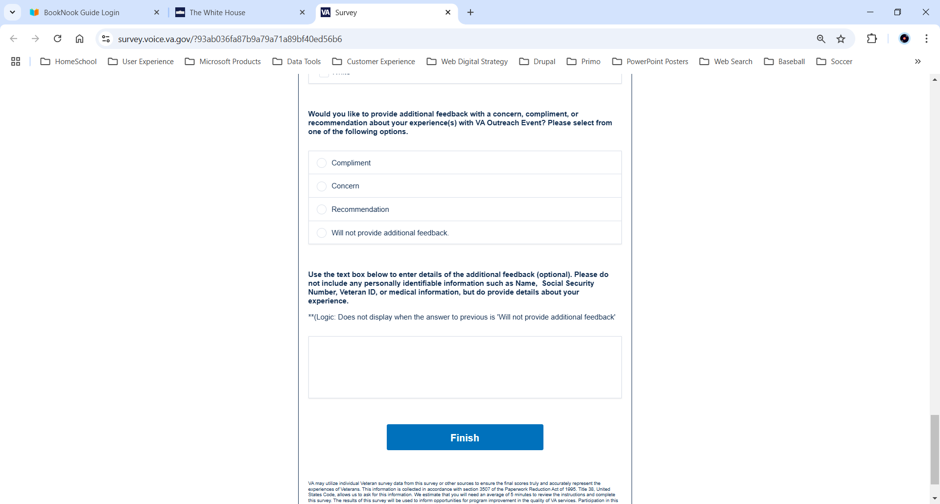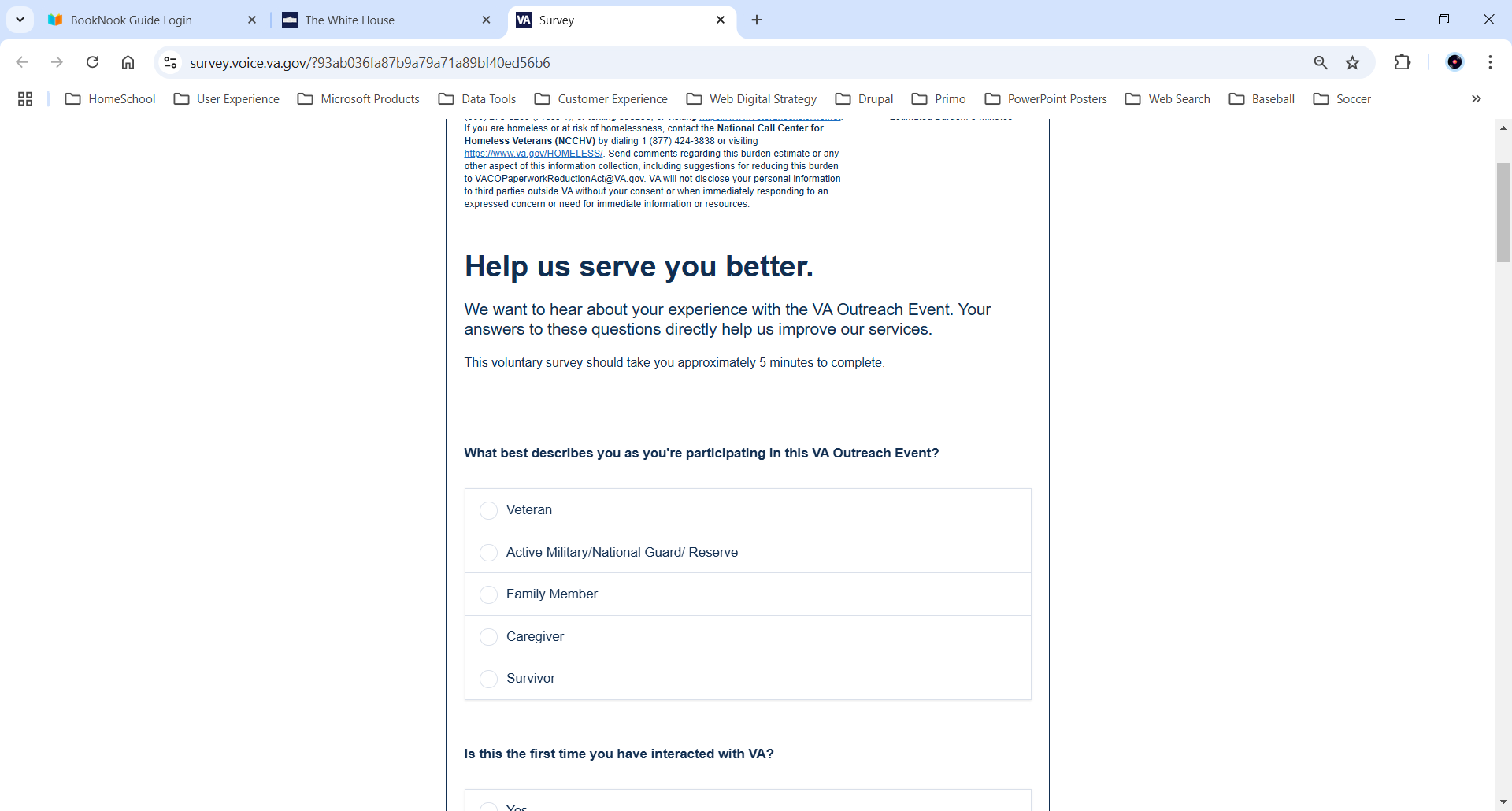 VA Burden Statement: An agency may not conduct or sponsor, and a person is not required to respond to, a collection of information unless it displays a currently valid OMB control number. The OMB control number for this project is 2900-0912, and it expires 09/30/2025. Public reporting burden for this collection of information is estimated to average 5 minutes per respondent, per year, including the time for reviewing instructions, searching existing data sources, gathering, and maintaining the data needed, and completing and reviewing the collection of information. Send comments regarding this burden estimate and any other aspect of this collection of information, including suggestions for reducing the burden, to VA Reports Clearance Officer at VACOPaperworkReduAct@va.gov. Please refer to OMB Control No. 2900-0912 in any correspondence. Do not send your completed VA Form to this email address.