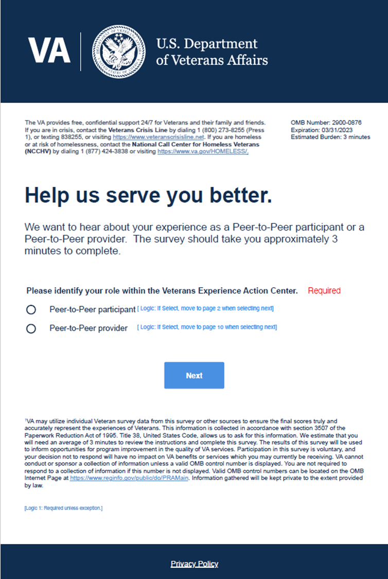 Veterans Engagement Action Center (VEAC) Surveys