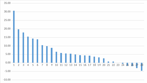 Figure 1. Percent difference between reweighted and imputed estimates for all 28 comparisons.