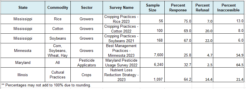 COOPERATOR FUNDED CHEMICAL USE SURVEYS