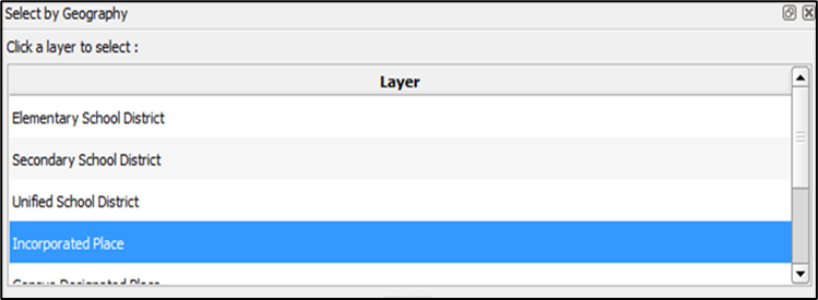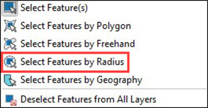 Provides options to select layer features in the map window with a single click, by dragging the cursor, or by drawing graphics on the screen. |