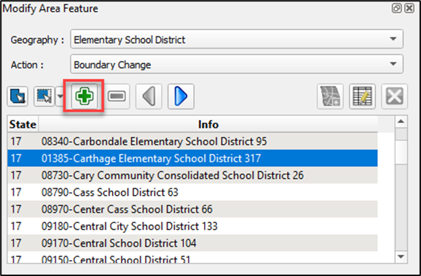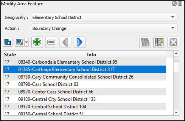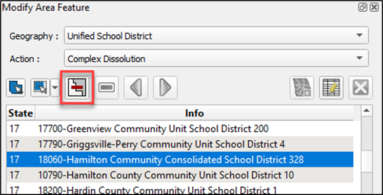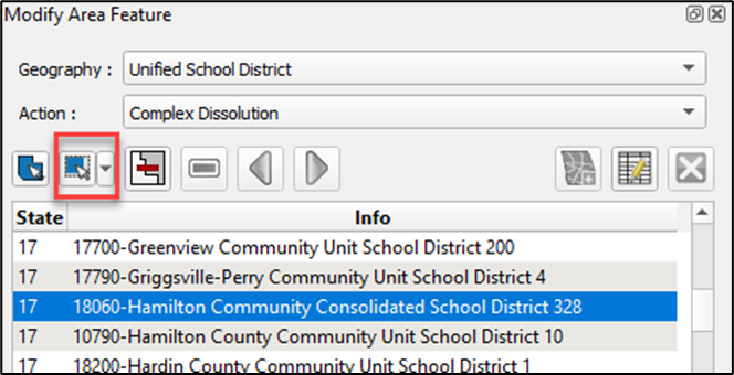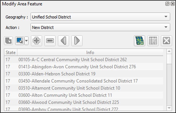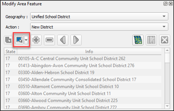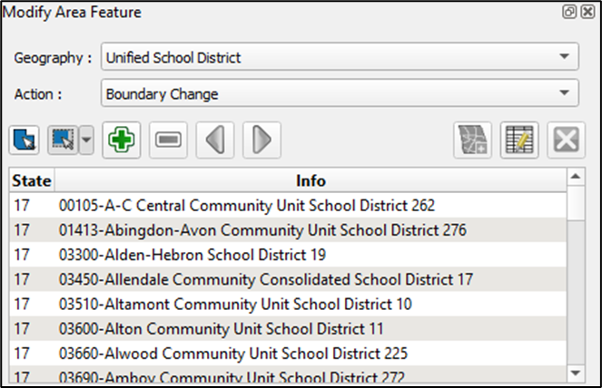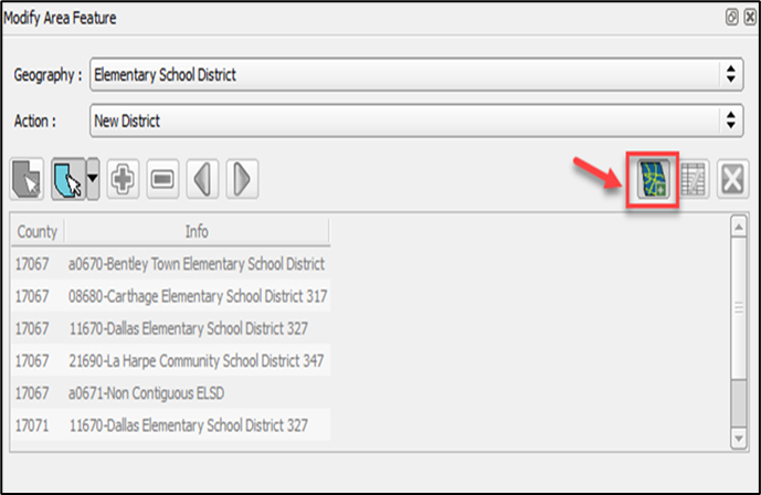 Table 9: Modify Area Feature Tool Buttons and Their Function/Description 30