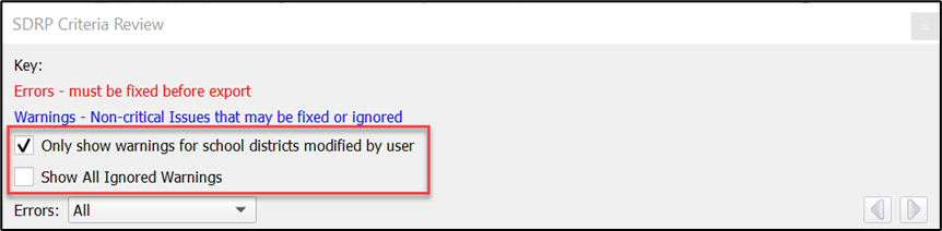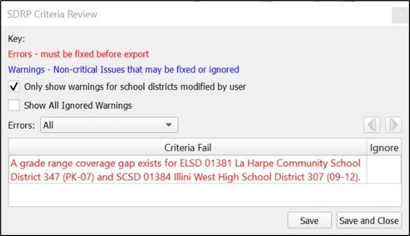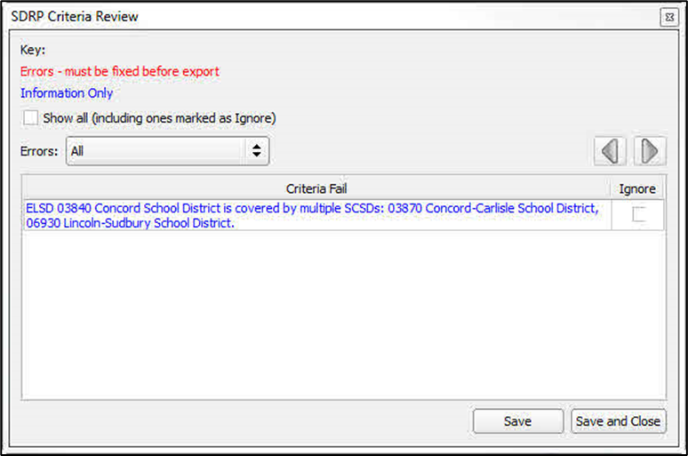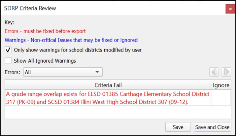 Table 21: SDRP Criteria Review Tool Error and Warning Messages 73