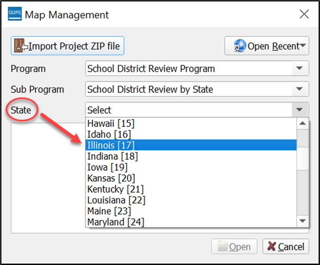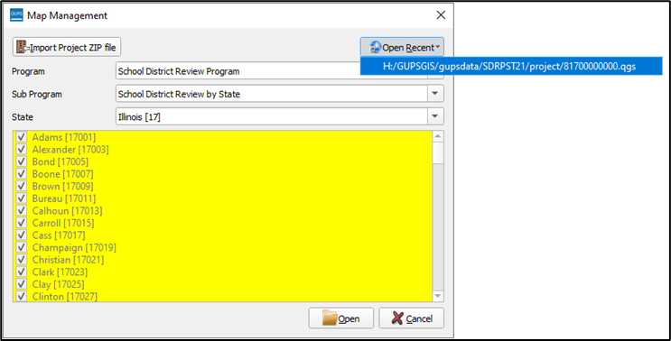 In order to delete all projects associated with a certain program, use the Clean by Program option (Figure 41). To ensure that all data and files associated with a program are removed, restart QGIS/GUPS by closing the program and reopening it again.