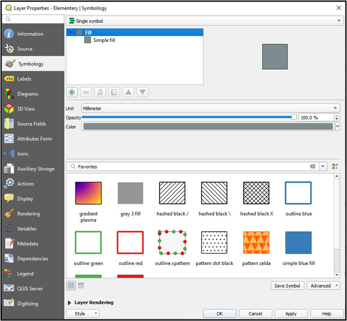 The Layer Properties window opens. Modifications can be made to various default properties set for the added layer.