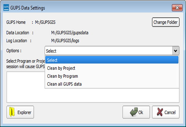 The GUPS Data Settings tool (Figure 39) offers three clean data options: Clean by Project, Clean by Program, and Clean All GUPS Data.