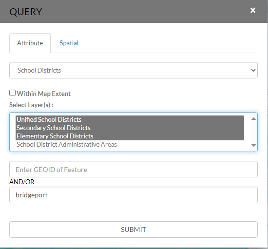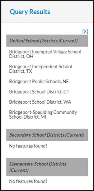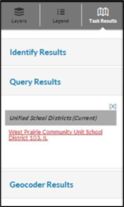 Left-click on a feature to identify attributes for a selected layer in the Table of Contents. Right-click on the map to identify attributes for all visible layers at that selection point. |