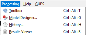 Shows the logs for the GUPS session. The logs include information about underlying processes related to QGIS startup, plugins loading, processing tools, etc. |