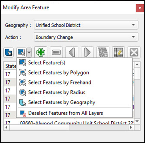 5.2.2.1 Using the Select Feature(s) Button in the Modify Area Feature Tool 47