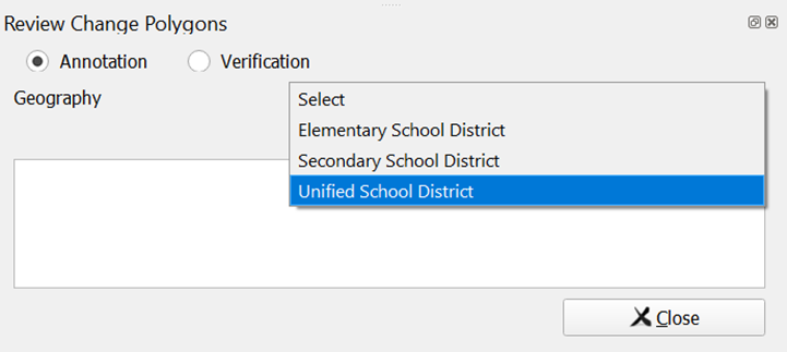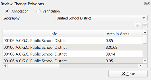 Verification involves reviewing the school district boundaries to ensure the Census Bureau accurately and completely captured the updates submitted by mapping coordinators. In GUPS, the Review Change Polygons tool is used to identify areas where updates were submitted. Follow the steps in Table 3 to verify the accuracy of the school district boundaries. Refer to the Annotation Phase respondent guide’s Review Change Polygons Tool section for additional details.