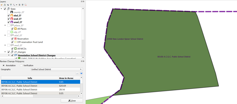 Note: Only new districts, deleted districts, and attribute changes are reflected in the Verification Inventory Changes file. No file is created if a state submitted only a boundary correction(s).