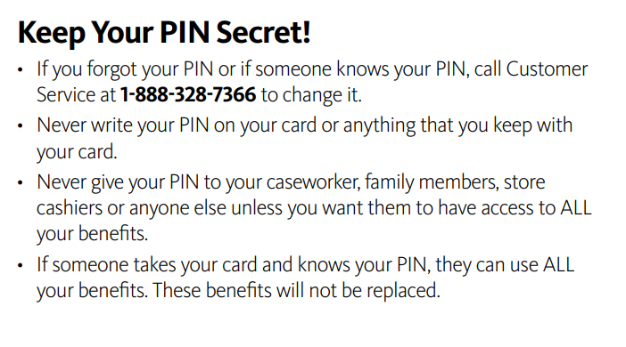 [POINT TO “KEEP YOUR PIN SAFE”, 4th BULLET] Can you tell me in your own words what this part is about?