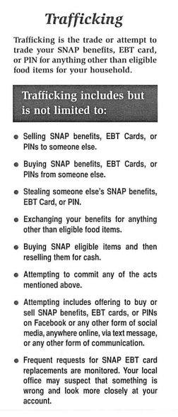 [POINT TO SECOND PARAGRAPH, THIRD SENTENCE] This line says not to alter EBT cards. What does that mean to you?