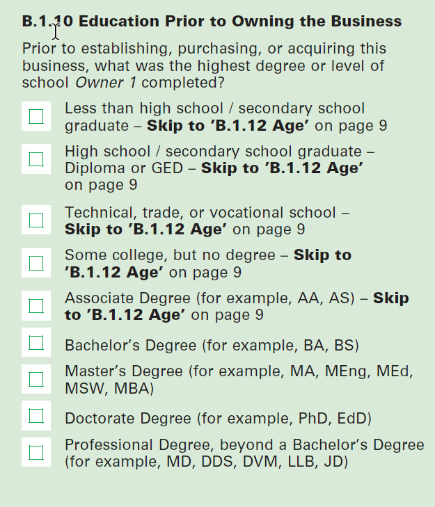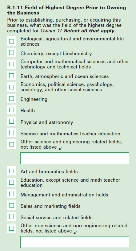 B.1.11 Field of Highest Degree Prior to Owning the Business