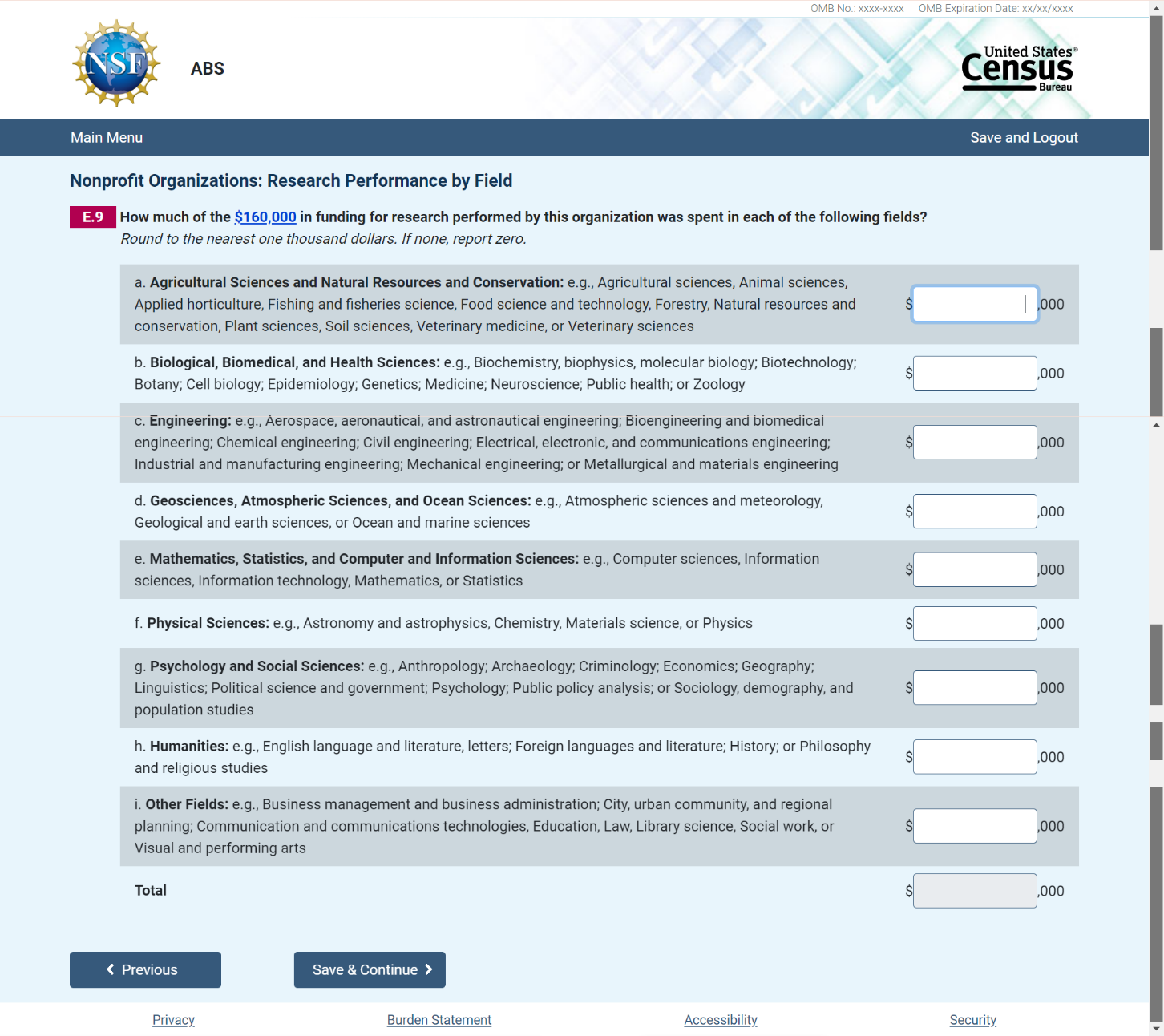 E.12 Nonprofit Organizations: Research by Type of Cost