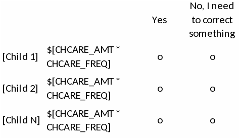 Probe: Could you report a total amount of child care, for all children, for the year? So, just one number, not for each child? Would you prefer to do that rather than these separate steps?