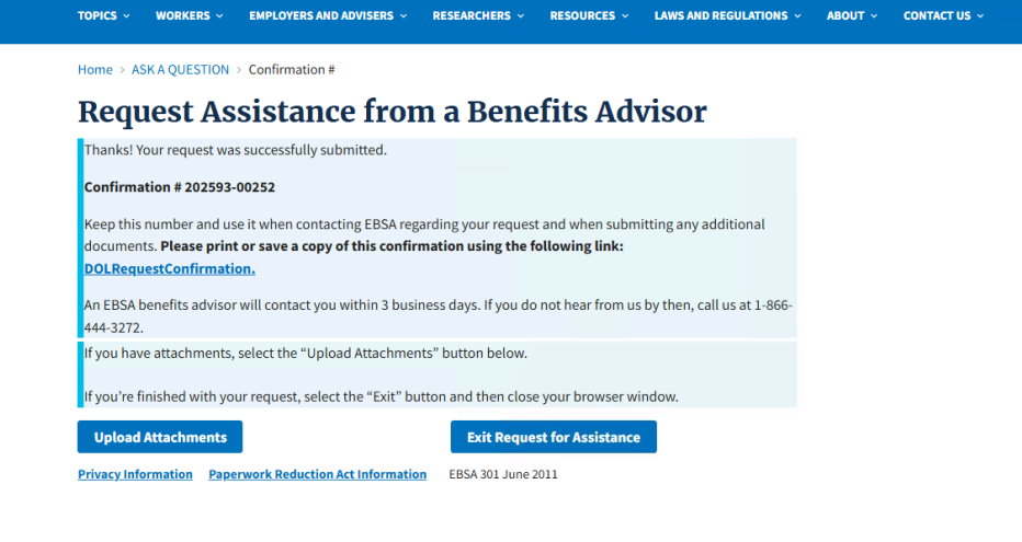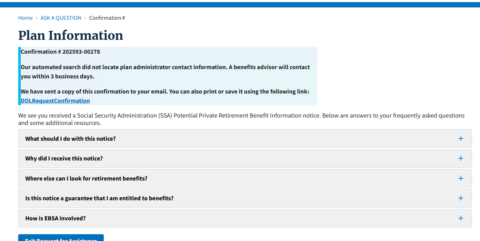 If there is no open inquiry and they select any option but (the opt out, or the SSA notice), they will receive this confirmation screen.