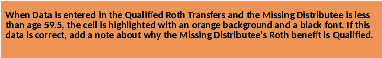 | f) | If the Missing Distributee is a Beneficiary, list the beneficiary's information and include an attachment, or use the Beneficiary tab, to include the originating Participant and why the beneficiary is due money | |||||