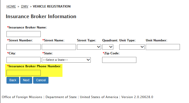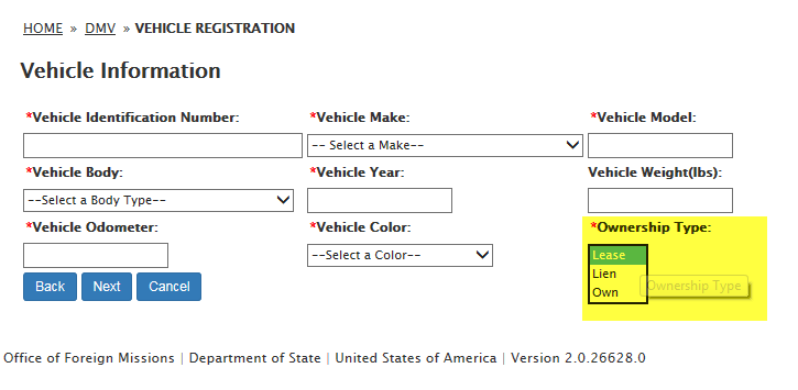 DS-100 Form / Registration (Mission Vehicle) Request: eGov pages