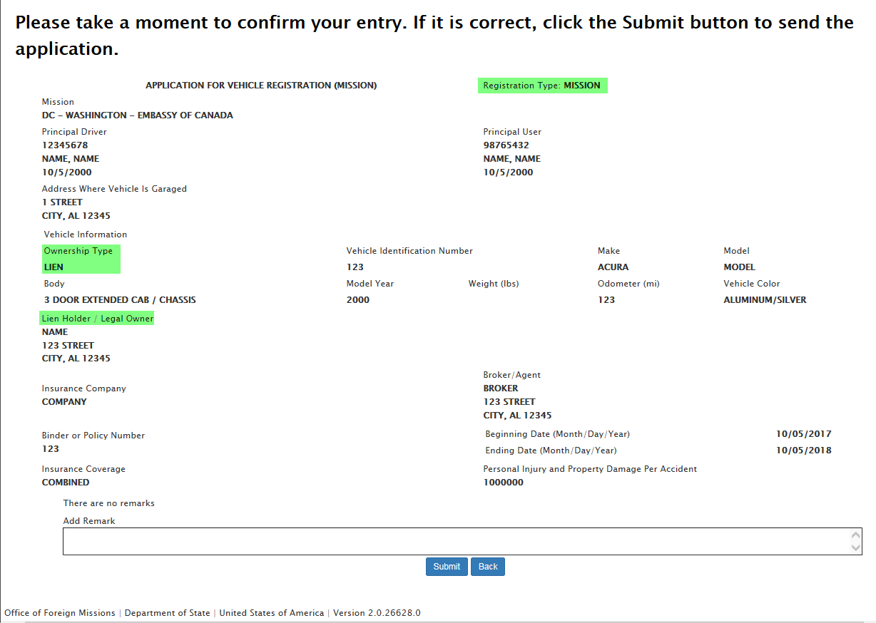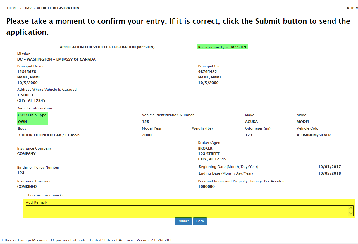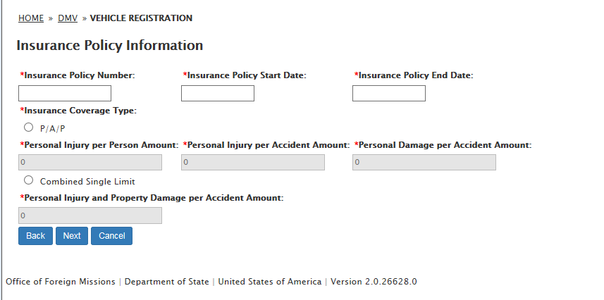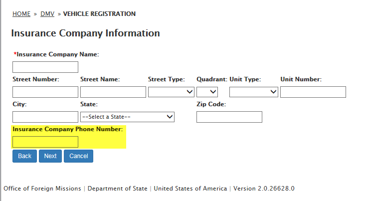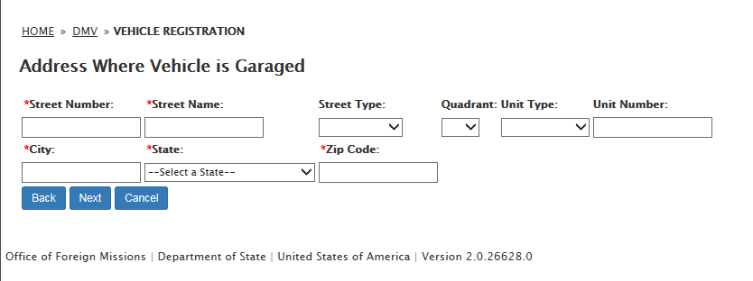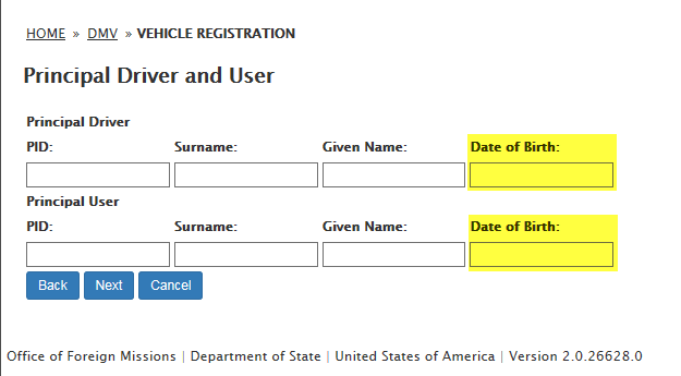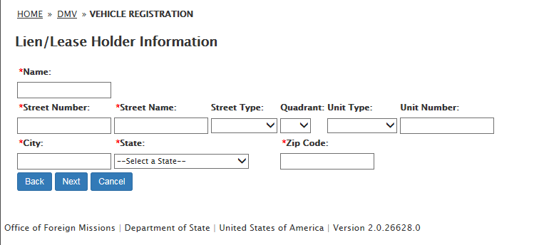 DS-100 Form / Registration (Mission Vehicle) Request: eGov pages